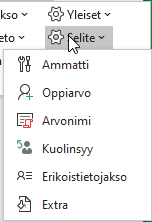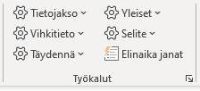 Työkalut ryhmän valikkoon on lisätty uusia työkaluja. Niillä voidaan muokata keskitetysti tietojaksojen tietoja, mm, muokata niitä. Valitaan haluttu tietojakso ja siihen kuuluva kenttä.