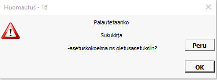 Huomautusvalikoimaa on täydennetty. Osa nousee esille raportin muodostumisen aikana ja osa "herää" jonkin painikkeen painalluksesta. Esim. ylläoleva huomautus tulee siitä, että tutkija on napauttanut hiirellä Aseta oletukseksi -painiketta