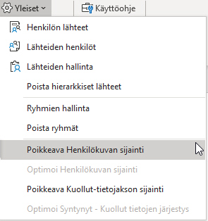 Työkalut ryhmän Yleiset valikkoon on lisätty työkaluja joilla voidaan optimoida Henkilökuva-tietojakson sijaintia sekä tarkistaa ja optimoida Kuollut tietojakson sijainti